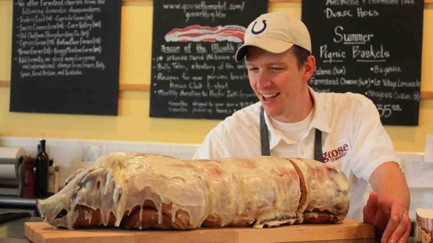 Goose the Market is your full-serivce butcher shop and specialty food market complete with craft beer and wine cellar. A rotating menu of sandwiches, soups, and gelato is ready to eat while staff cut to order from cases laden with farmstead cheeses, cured meats, house-made sausages, and local, pasture-raised steaks, chops, and poultry. Guests 21 and older can head to Goose's cellar, Enoteca, to order beer and wine by the glass, small plates, and cheese also cheese and cured meat tasting flights. Communal, barn wood tables are nestled between racks of carefully-curated beers, wines, olive oils, sauces, preserves, pickles, and more.