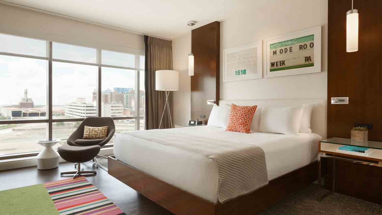 Nestled in the heart of downtown Indianapolis, The Alexander features outstanding business amenities, 209 stunning guest rooms and an emphasis on art and design. Guests can take advantage of a fitness center, multiple restaurants and 22,500 square feet of event space. Our unbeatable location puts you steps away from the city's most popular attractions. Catch a Colts game at Lucas Oil Stadium, a Pacers game at Gainbridge Fieldhouse, attend a conference at the Indiana Convention Center or head to Monument Circle for a performance by the Indianapolis Symphony Orchestra.
