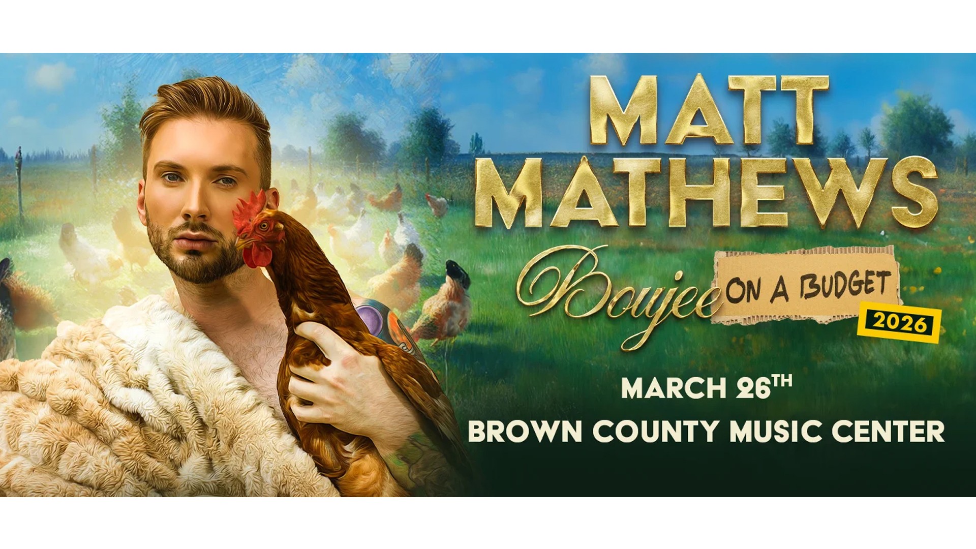 Comedian Matt Mathews is as real as it gets. Born-and-raised in Alabama, Mathews began performing stand-up in 2022 and quickly began headlining his own shows. His tours, including the "When That Thang Get Ta Thang'n" tour and the more recent "Boujee On A Budget" tour, have sold out venues across the country. Whether drawing from life experiences growing up gay in the South, or his never-ending farm chores that have endeared him to millions of fans around the world, be prepared: a Matt Mathews show is gonna be wild, real and dirty! Nothing is off limits.